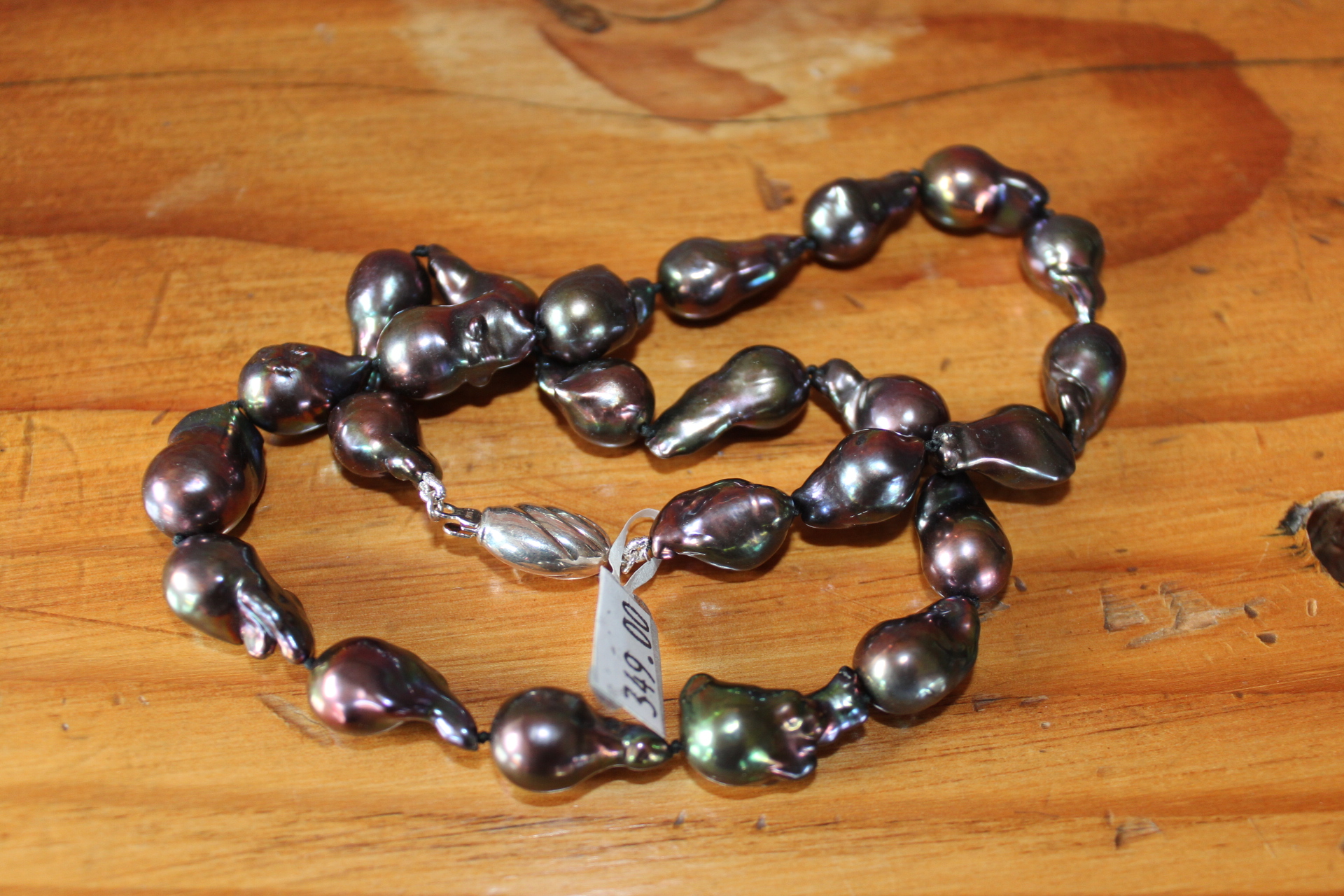 Stunning Baroque Fresh Water Pearls. Sterling Silver Clasp. The irregular shape of the Barogue means we can go back to pearls without the classic old look.