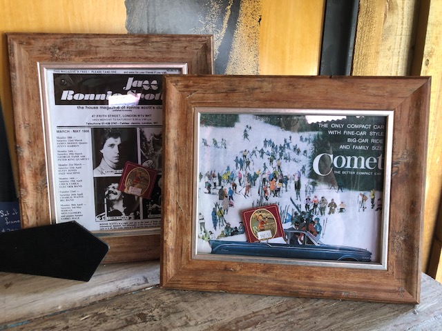A matching pair of wooden frames, one has had the stand come off, needs fixing. measure 34.5cm x 29.5cm. The picture size is 24x19cm. Come with the pictures as seen.